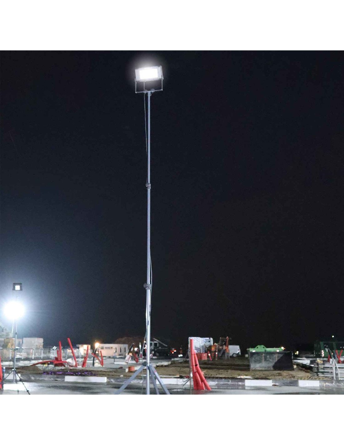 El trípode es extensible desde 2.2 m hasta 4.5 m, lo que ofrece una flexibilidad completa para posicionar la luz de trabajo en la altura y el ángulo requeridos. Cuando se monta en el trípode, la luz se puede inclinar para proporcionar el ángulo de haz óptimo. El trípode está equipado con una función de sistema de seguridad con amortiguación de aire incorporada para un uso seguro y fácil que evita caídas accidentales al elevar o bajar el trípode.